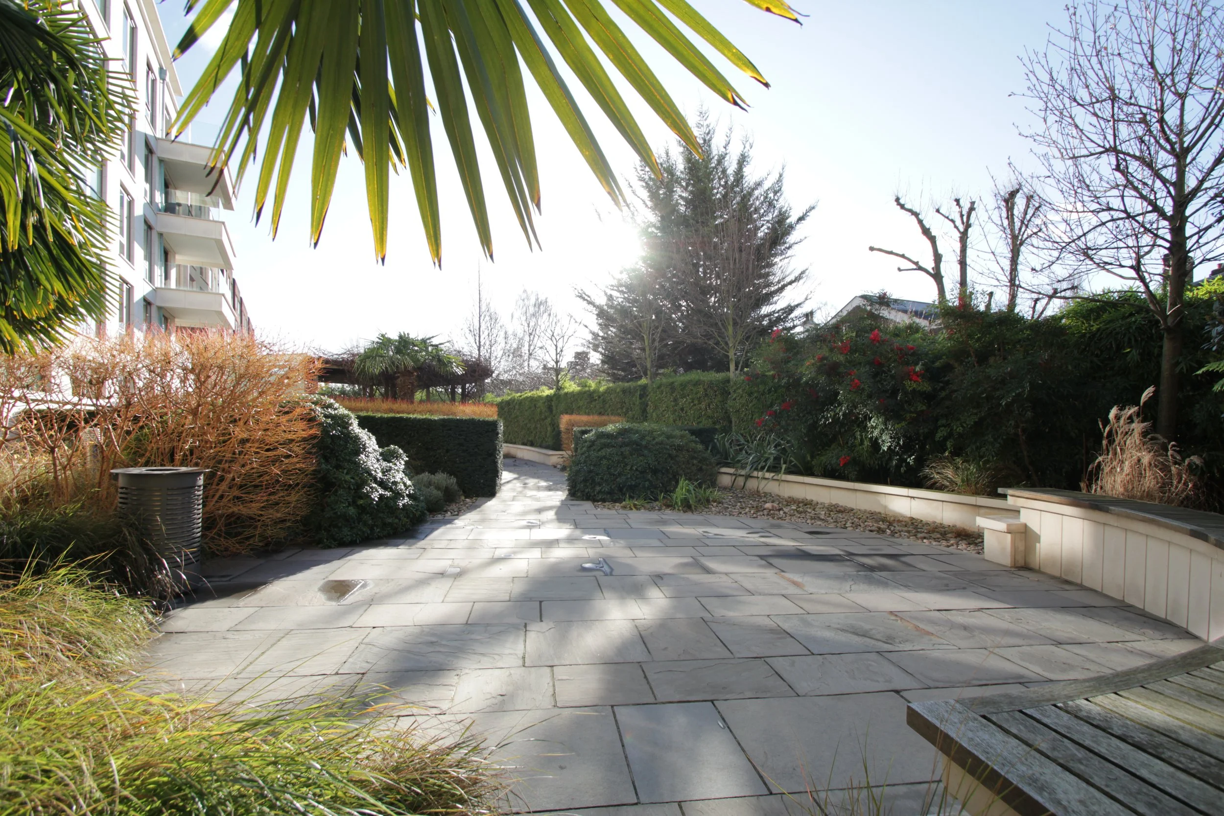 A standout feature is the private terrace spanning the width of the apartment, providing direct access to the landscaped communal garden. Residents benefit from secure underground parking and 24-hour uniformed concierge service.