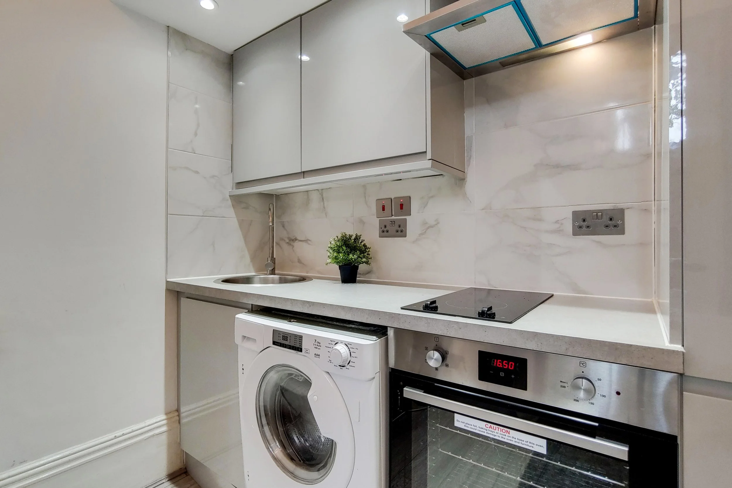 The property benefits from wooden flooring, a 32" flat screen TV (wall mounted and with free-view), a sofa, coffee table, dining table, modern double bed and cupboard space. The kitchen includes a washing machine, hob cooker, oven, fridge/freezer.