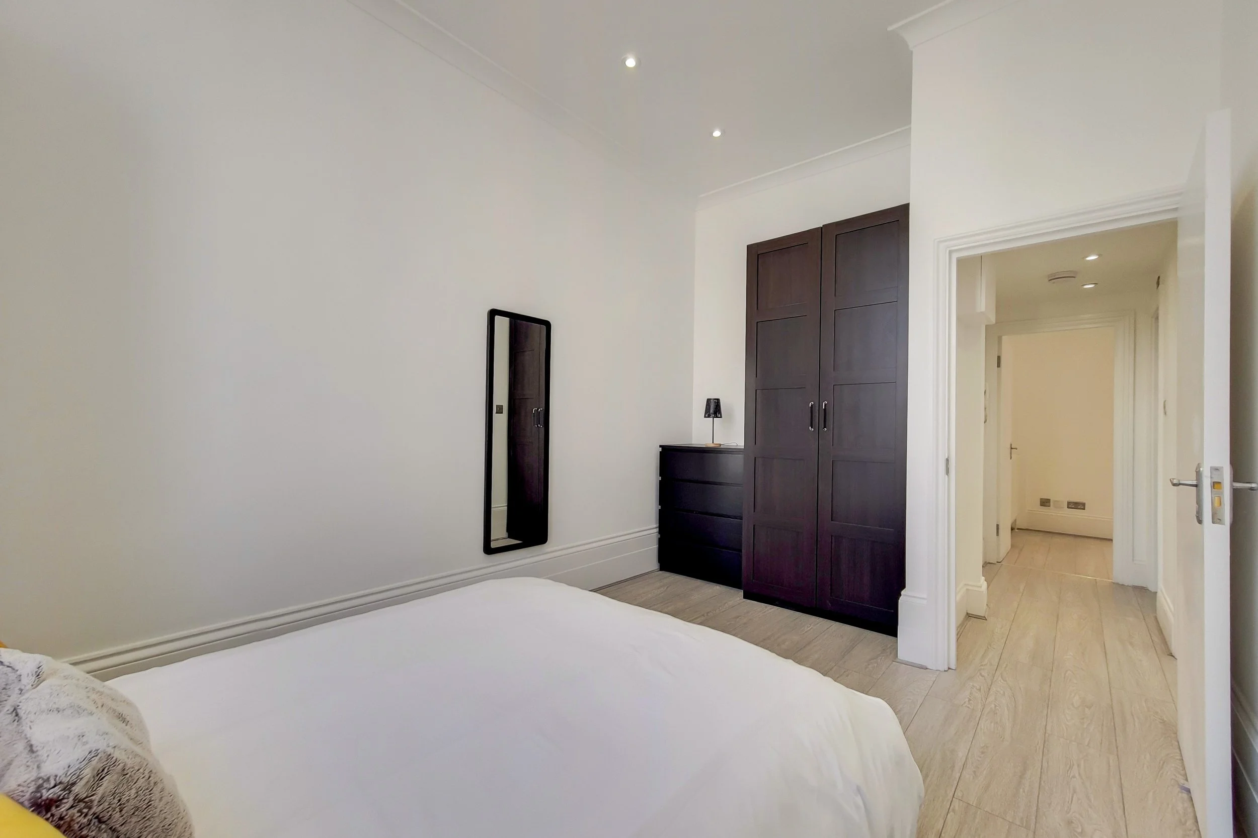 This bright two bedroom flat, recently renovated and refurbished offers convenient living accommodation in an enviable location. This property boasts a living and dining area, two smart bedrooms and wooden flooring throughout the property. The flat is available fully furnished with a flat-screen TV and three seat sofa. The kitchen comes fully-equipped with a washing machine, hob cooker, oven, fridge/freezer.