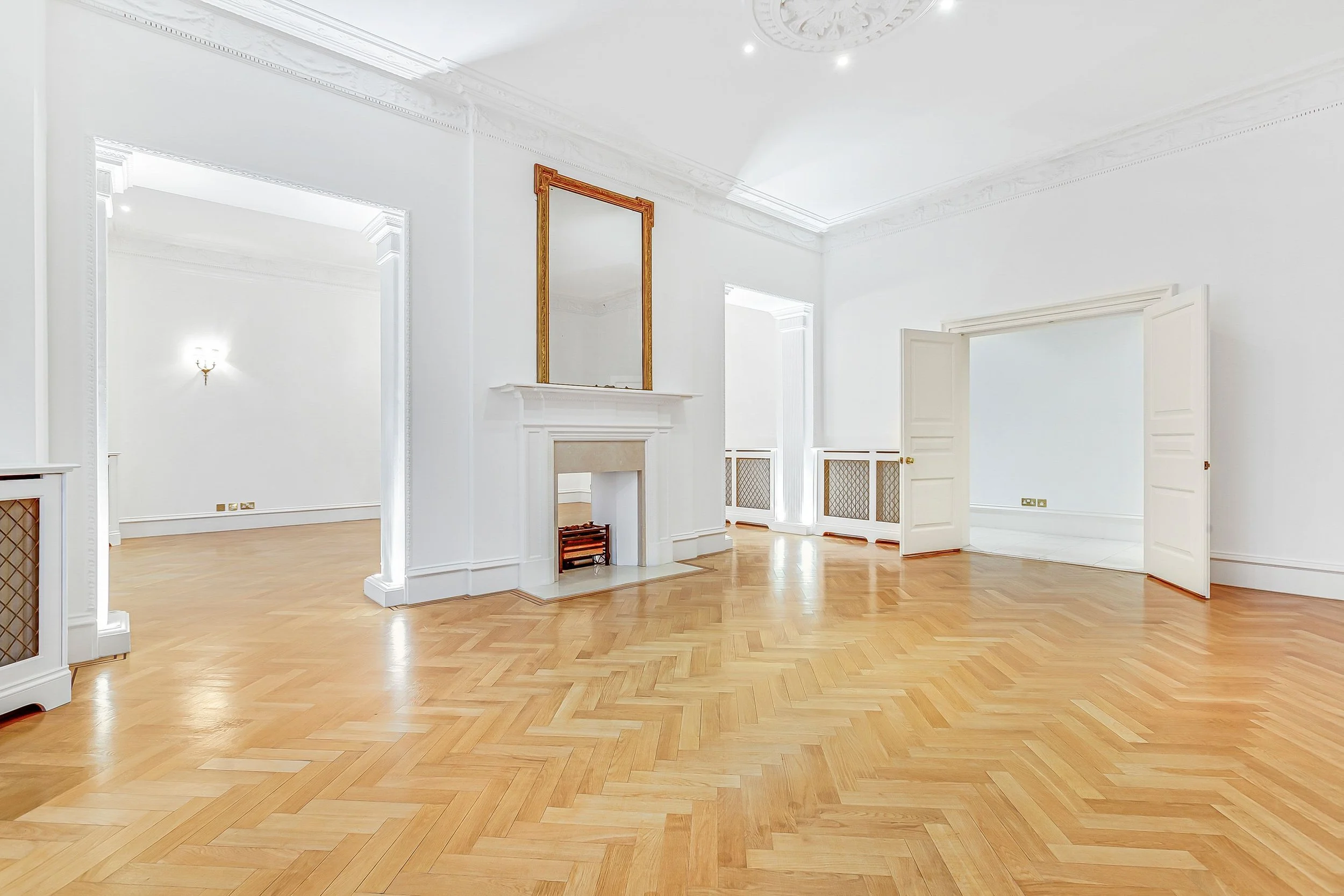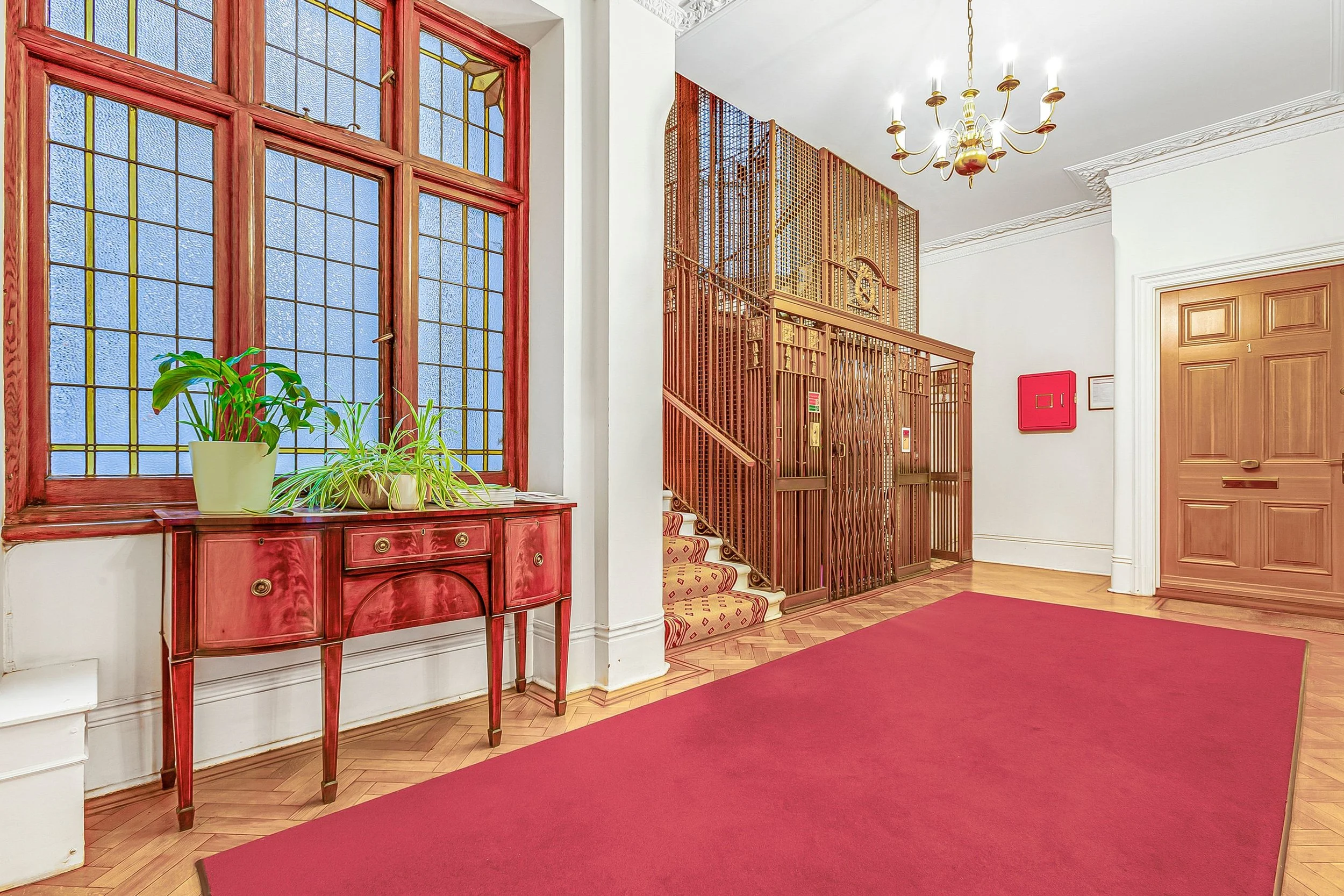 Spanning 2,432 sq. ft., the property features soaring 4-meter-high ceilings, enhancing the grandeur of the two generously sized reception rooms. Each of the five spacious bedrooms provides ample comfort, with four of them benefiting from en-suite bathrooms. The building is also portered, ensuring security and convenience in this prestigious setting.